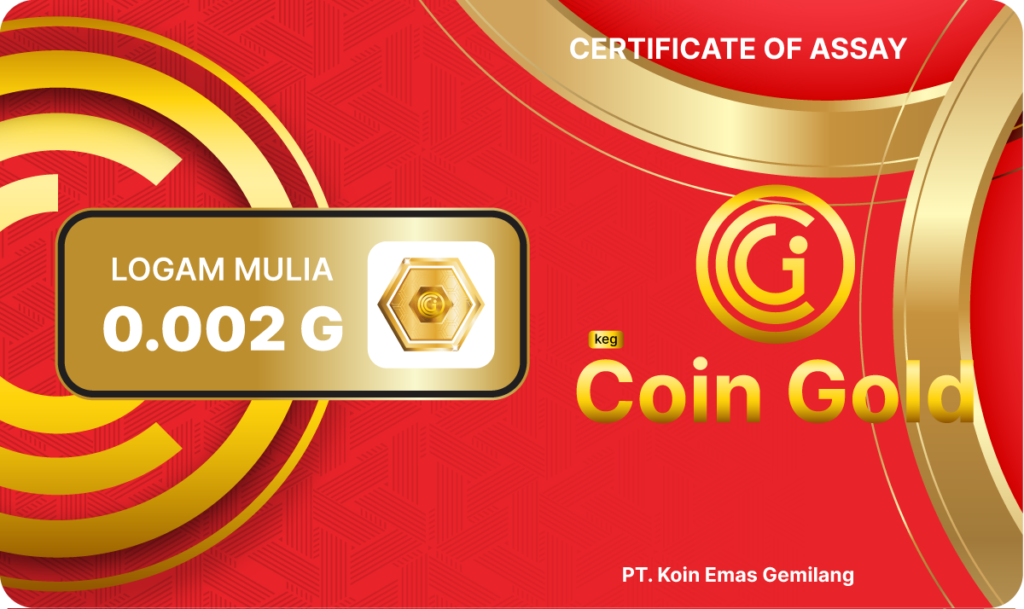 Coin Gold adalah produk logam mulia dengan beberapa gramasi pilihan dan bersertifikat resmi Sucofindo. Logam mulia Coin Gold dibuat dengan menjaga mutu yang baik dengan standar Internasional. Selain memiliki kualitas emas yang bermutu tentu ada berbagai keunggulan produk Coin Gold sebagai pilihan dalam memiliki logam mulia.